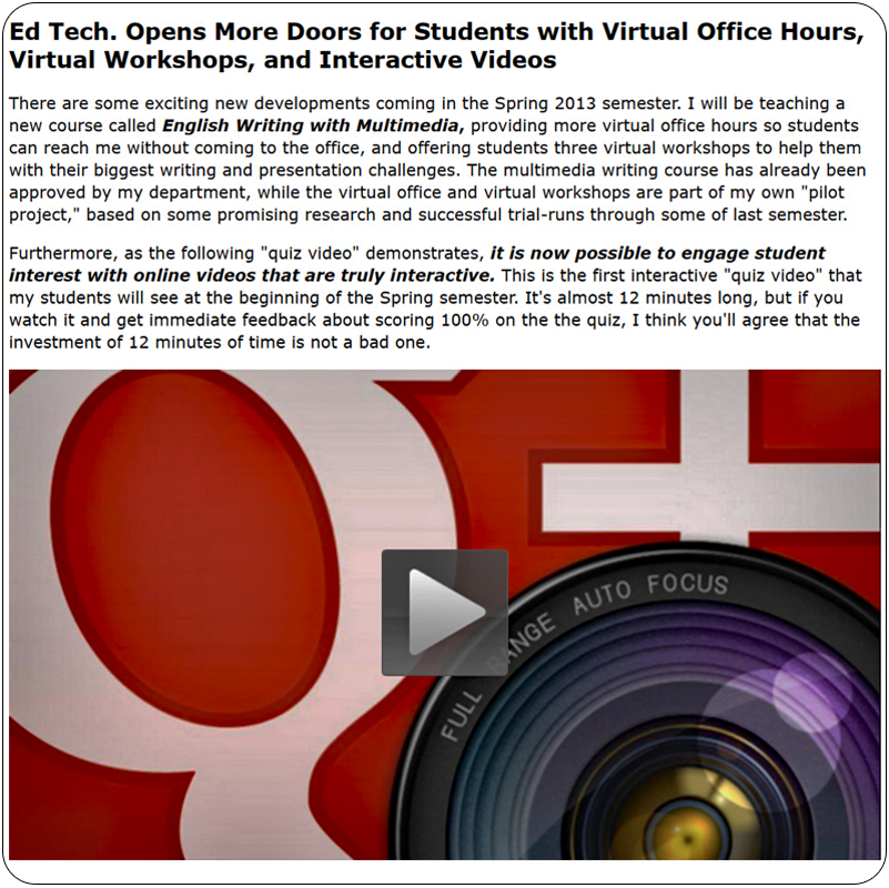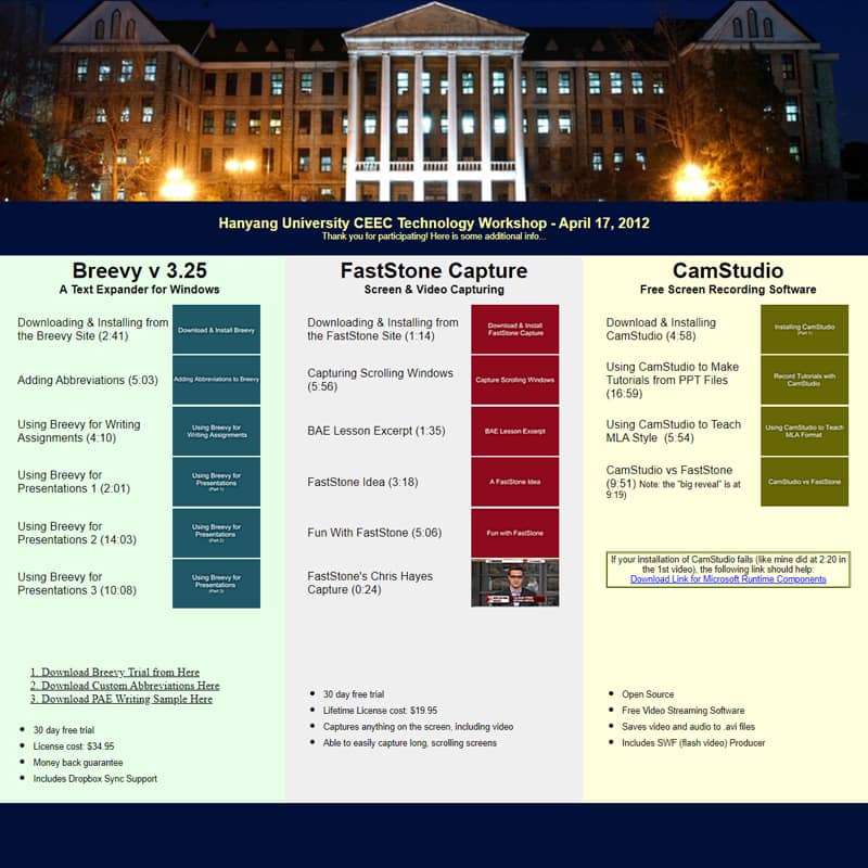 To provide sustainment and support for faculty members, this site was developed as a companion to a professional development activity I led at Hanyang University in 2012.